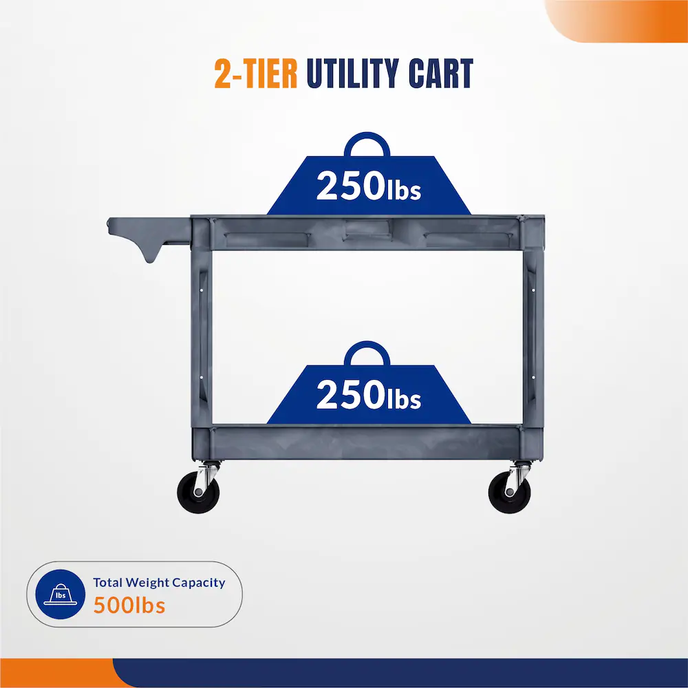 • Capacity: 250 lbs per shelf / 500 lbs total